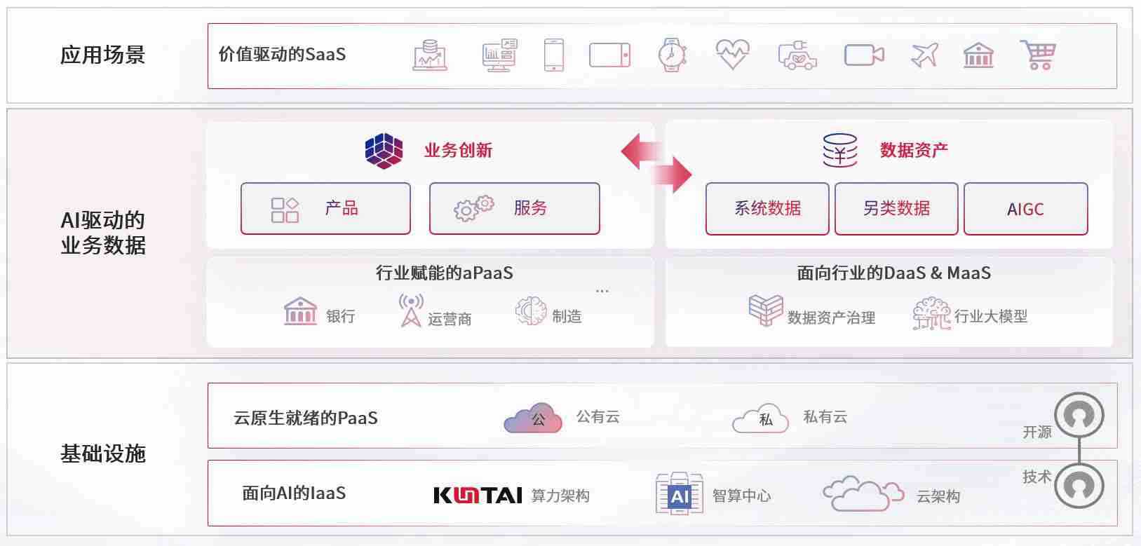 数字时代,,,,围绕企业数字化转型的关键要素,,,,PokerKing数码开创性的提出数云融合战略和技术体系框架,,,着力在云原生、、数字原生、、、、AI原生和信创产业上架构产品和服务能力,,,为处在不同数字化转型阶段的快消零售、、汽车、、金融、、、医疗、、政企、、、教育、、运营商等行业客户提供泛在的敏捷IT能力和融合的数据驱动能力,,构建跨界融合创新的数字业务场景和新业务模式,,助力企业级客户建立面向未来的核心能力和竞争优势,,,,全面推动社会的数字化、、、智能化转型升级。。。